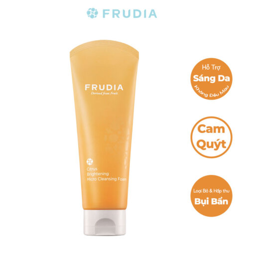 Sữa Rửa Mặt Tạo Bọt Sáng Da Từ Cam Quýt Frudia Citrus Brightening Micro Cleansing Foam 145ml giàu vitamin C giúp làm sáng vùng da tối màu và giữ ẩm cho làn da. Bọt siêu mịn giúp làm sạch sâu, lấy đi chất nhờn, duy trì làn da sáng khỏe.
